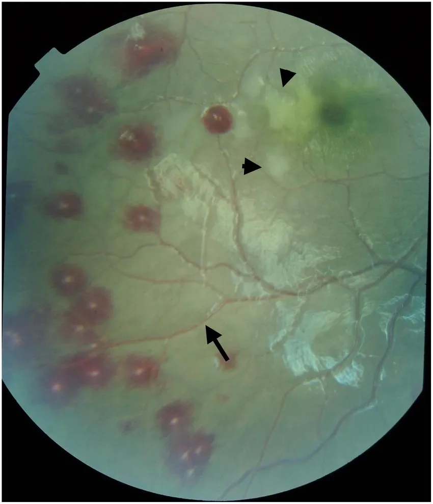 The pathogenesis of malarial retinopathy is associated with that of cerebral malaria, i.e. sequestration of infected red blood cells in retinal and cerebral microvasculature, causing vessel obstruction and reduced blood flow resulting in downstream ischemia and hypoxia.